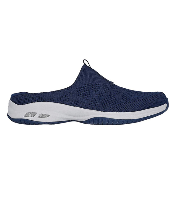 Walk all day in easy-wearing comfort with Skechers Relaxed Fit?: Commute Time - Spring Day. This backless mule style features a crochet knit upper with a cushioned Skechers Air-Cooled Memory Foam? insole.