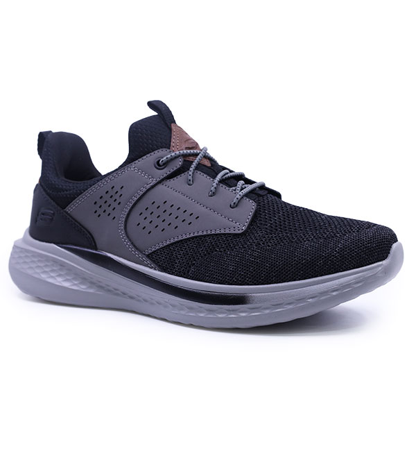 Classic modern style combines with comfort in Skechers Relaxed Fit®: Slade - Breyer. This stretch-laced vegan style features a mesh and synthetic upper with a charcoal-infused Skechers Air-Cooled Memory Foam® insole and a Skechers Goga Mat Arch™ for added support.