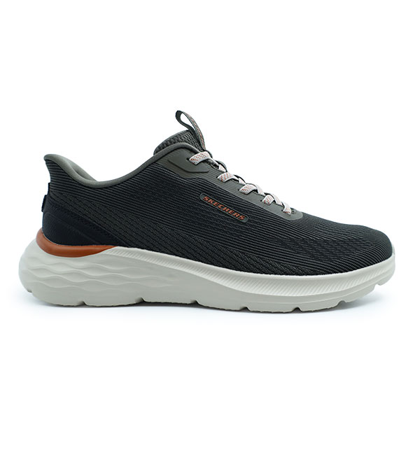 Simply step in and go wearing Skechers Hands Free Slip-ins® Relaxed Fit®: Garner - Ellis. Designed with our Heel Pillow®, this vegan slip-on features a mesh and synthetic upper with no-tie stretch laces, a charcoal-infused Skechers Air-Cooled Memory Foam® comfort insole, and Memory Arch™ cushioning for added support.