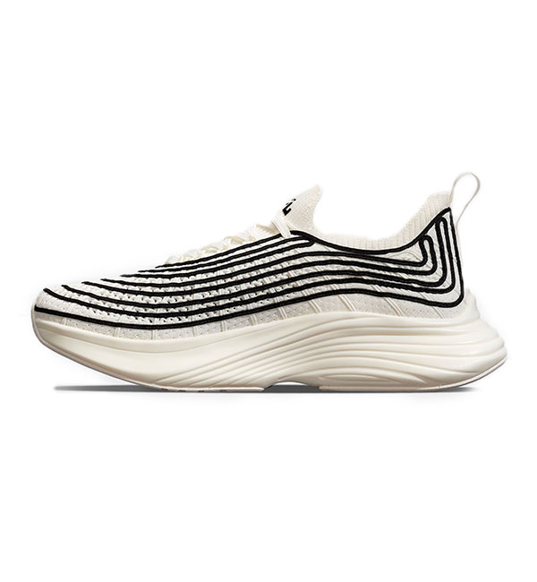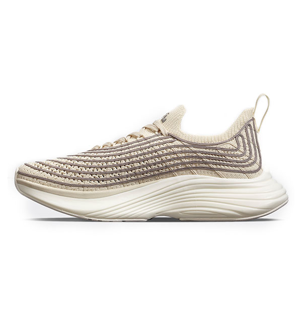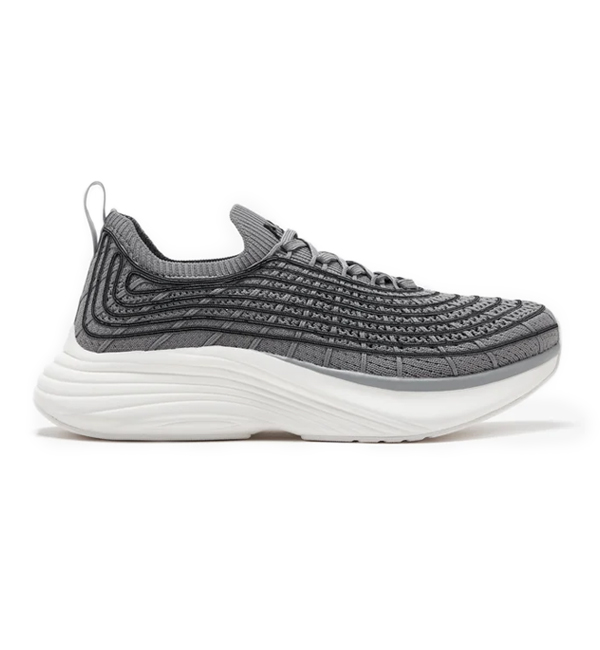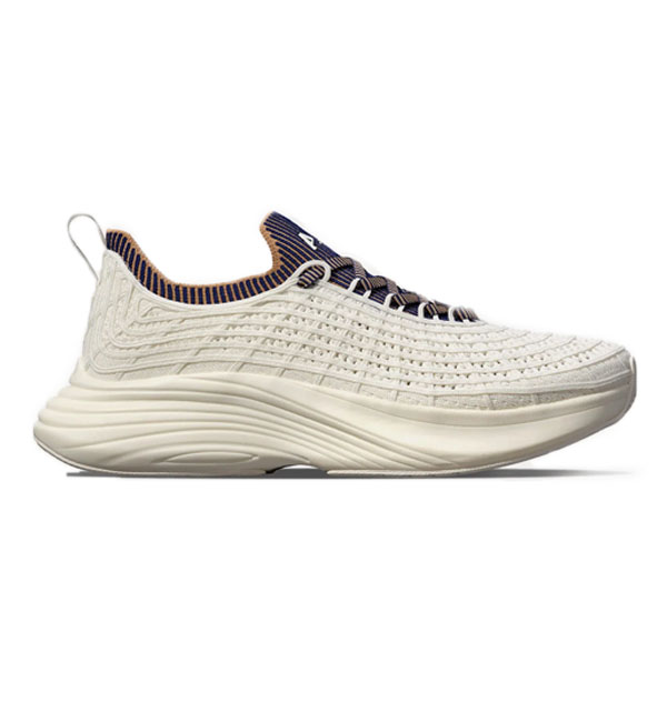 The APL FutureFoam™ running midsole compound was developed to provide exceptional compression, rebound and energy return through strenuous testing over the past 24 months. The midsole surface features horizontal channels carved by the wind to make each stride smoothly flow through the air. Additionally, a slanted, forward leaning shank plate is sandwiched between the two-piece midsole to help promote forward motion upon foot strike, and accelerate the gait cycle. The midsole sits atop a lightweight, two-piece rubber outsole that provides excellent traction along your journey.